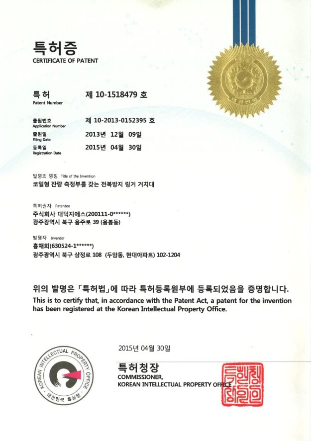 특허_코일형 잔량 측정부를 갖는 전복방지 링거 거치대